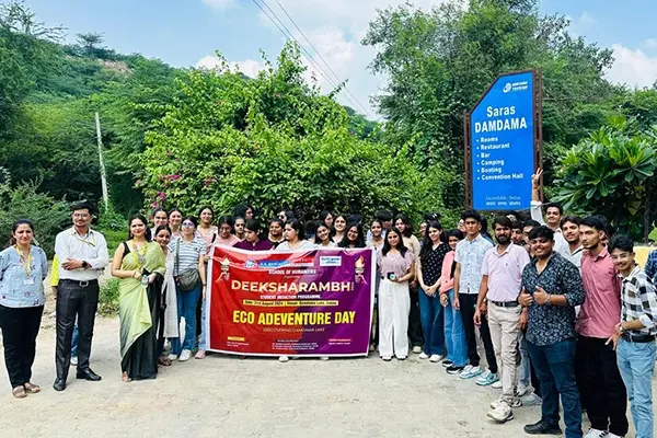 The School of Humanities organised “Eco Adventure Day: Discovering Damdama Lake” as a highlight of the Deeksharambh Student Induction Programme. The day was filled with adventure as students tried their hand at boating, participated in various thrilling activities, and enjoyed camel rides, all while deeply connecting with nature. This immersive experience was not just about fun and excitement—it also served as a meaningful step toward fostering a sustainable future by promoting the importance of environmental stewardship and the Sustainable Development Goals. From learning in the classroom to learning in the great outdoors, our students are on a path of discovery and growth.