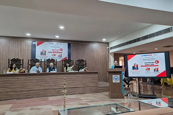 School of Legal Studies, under the esteemed Motilal Nehru Chair, organized Special Lecture VII on ‘Legal Education Trends in India’. The chief guest of the event was Prof. Ranbir Singh, founder and former Vice Chancellor of NLU Delhi. Prof. Ranbir Singh, the founder and former Vice Chancellor of NALSAR Hyderabad and National Law University, Delhi, shared invaluable insights into law as a profession, emphasizing the pivotal role of legal education, research, and diligence.