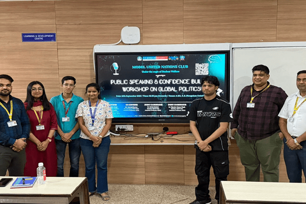 The Model United Nations Club under the aegis of Student Welfare, organized a Public Speaking & Confidence Building Workshop on Global Politics. The session featured distinguished panelists—Dr. Kaveri Khound, Dr. Minhaj Ahmed Khan, and Dr. Saleem Ahmed who engaged students in thought-provoking discussions on nepotism, corruption, media censorship, and freedom of expression in global politics. An Open Mic session followed, where students actively voiced their opinions and sharpened their oratory skills. The workshop provided a dynamic platform for students to build confidence, develop public speaking abilities, and critically analyse contemporary global issues, reinforcing the vision of the MUN Club to nurture informed and confident future leaders.