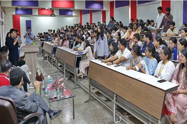 School of Journalism & Mass Communication organised an engaging workshop with RJ Naved, who shared insights on radio, podcasts, and digital platforms. From the art of pranks to the power of podcasts, students were all ears as he spilt the secrets of ruling both radio and the digital world.