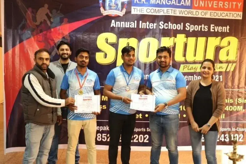 K.R. Mangalam University goes beyond intercolljegiate sports events with its own internal competition, “SPORTURA.” Exclusive to KRMU students, SPORTURA is a vibrant Inter-School sports event that annually attracts over 1000 participants from a wide range of schools. Here, students have the opportunity to showcase their sporting prowess in Cricket, Football, Basketball, Volleyball, Tennis, Badminton, Chess etc. SPORTURA serves as a testament to the university’s commitment to providing avenues for students to excel not just academically but also athletically