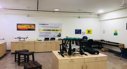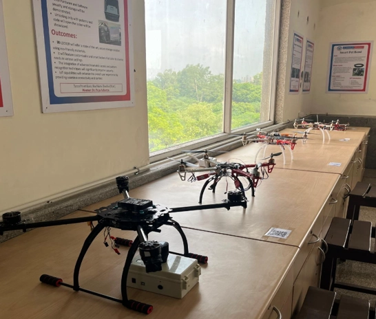 - Drone Lab Facility: facilities of Small and Medium category Drones such as quadcopter ,Hexacopter, agri drone