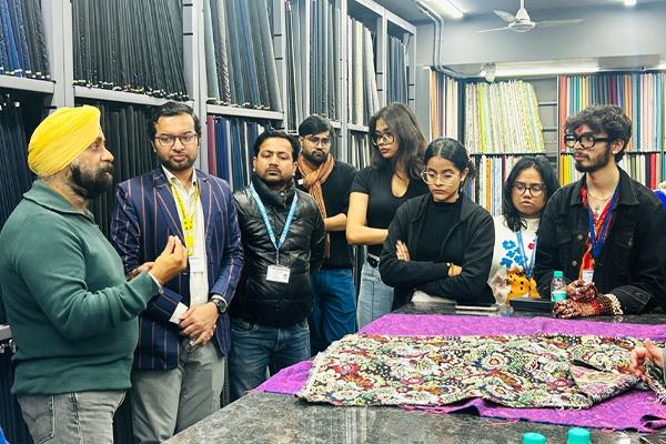 Students of the Fashion Design had the opportunity to interact with industry expert Mr. H. P. Singh, with an in-depth technical session conducted by Mr. M. P. Singh, Managing Director. The session focused on strengthening students’ practical understanding of fabrics, weaves, and surface development techniques widely used in the garment and textile industry. Through detailed explanations and physical demonstrations, students were introduced to a range of fabrics including velvet, PV (polyester–viscose blend), cambric with jacquard effects, canvas, tusser silk, and poplin, with emphasis on their structure, properties, and end-use applications. The session further covered traditional and advanced weave structures such as dobby, jacquard, satin, duck weave, and herringbone weave in tweed, along with combinations of dobby and satin weaves to enhance visual and textural appeal.
