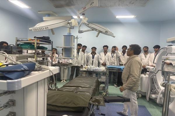 During the visit, Dr. Sudeep Singla, Senior Doctor, interacted with the students and shared valuable insights on hospital workflow, patient care, and the multidisciplinary role of healthcare professionals. In addition to the pharmacy section, students were also briefed about the functioning and management of critical hospital units, including the Operation Theatre (OT), ICU, NICU, and Labour Room, gaining a holistic understanding of clinical and emergency services.