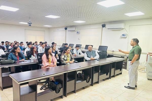 The School of Agricultural Sciences organised an educational visit to the Indian Agricultural Research Institute (IARI), New Delhi, to provide students with hands-on learning and exposure to advanced agricultural technologies. The event began with a lecture by Dr. Girijesh Mahra, Assistant Professor, Division of Extension Education, IARI, who discussed India’s agricultural development, the Green Revolution, and the contributions of Dr. M.S. Swaminathan and Dr. Norman E. Borlaug, while engaging students with real-life examples.
