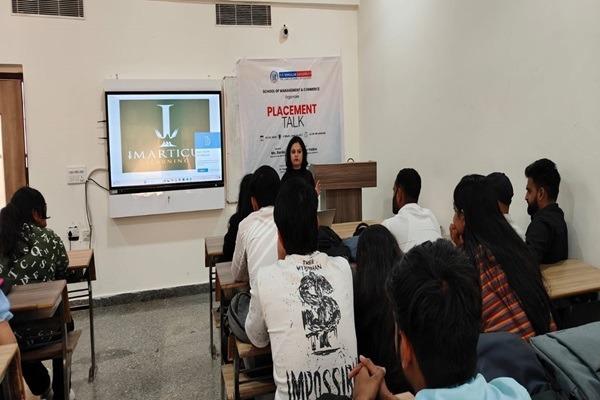 School of Management and Commerce organised a placement talk for MBA students. Experts took the session from Imarticus Learning where Mr. Hitendar Yadav and Ms. Sonia shared valuable insights into the current job market and the skills necessary for success in various sectors. Mr. Yadav emphasized the significance of networking and building a personal brand, while Ms. Sonia provided an overview of the courses offered by Imarticus Learning, designed to equip students with in-demand skills. They also discussed trends in recruitment and the vital role of internships in securing job placements. Attendees found the session highly beneficial, gaining insights into preparing for their future careers.