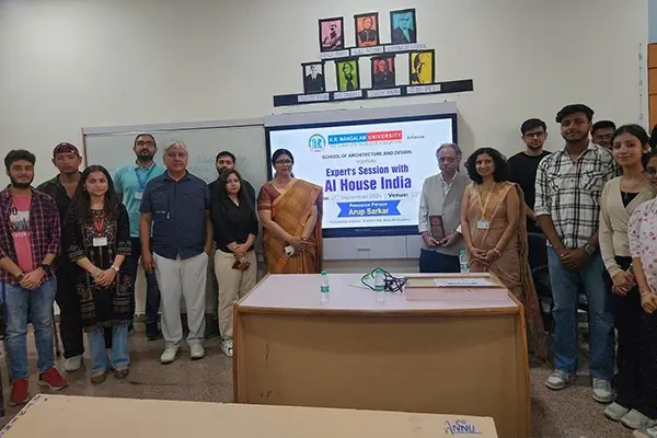 The School of Architecture and Design organised an expert session in collaboration with AI House India. AI House, a Hong Kong-based software company, recently expanded its operations in India. The session was led by Mr. Manjit Gogoi, Director of AI House India, along with Ar. Arup Sarkar, an architectural designer. They introduced students to 3D design and rendering techniques using their software, with Ar. Arup conducting a live demonstration. The session provided valuable learning insights to the students.