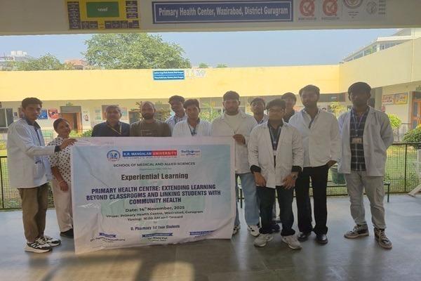 The School of Medical And Allied Sciences, organised a field visit to the Primary Health Centre (PHC), Wazirabad-Gurugram for students under the theme: “Primary Health Centre: Extending Learning Beyond Classrooms and Linking Students with Community Health.” The visit provided students with practical exposure to primary healthcare services, including OPD functioning, immunisation activities, maternal and child health care, diagnostic facilities, and pharmacy-based drug distribution. Students interacted with the Medical Officer, Pharmacist, Nursing Staff, ANM, and ASHA workers, who explained routine services and the implementation of major National Health Programs. The experience helped students connect classroom learning with real community health practices, especially in areas like essential drug management, health education, and public health outreach.