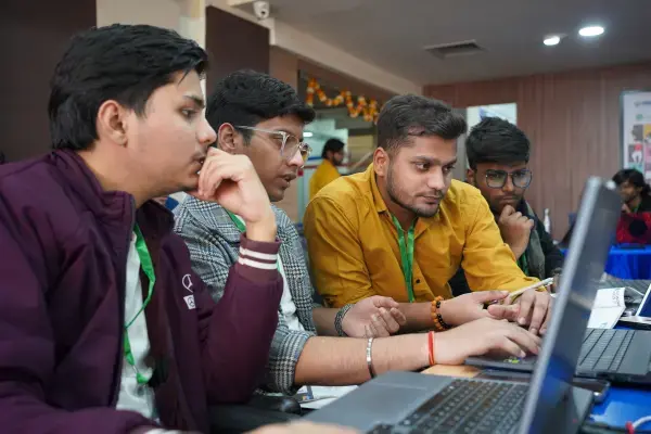 HACK KRMU 5.0, the 54-hour national-level hackathon organised by the School of Engineering & Technology (Center of Excellence – AI) witnessed extraordinary energy, innovation, and dedication from participants across universities. With over 42 hours of continuous coding, teams worked relentlessly to develop impactful and scalable solutions across diverse domains. The atmosphere remained vibrant throughout, boosted by engaging mentor interactions, technical evaluations, and a DJ session sponsored by Red Bull that re-energized participants during the late hours. The Midnight Challenge further added excitement, keeping the competitive spirit alive. Judgment Round 1 was conducted between 1:00 A.M. and 4:00 A.M. by esteemed judges from Hackshastra along with developers from Hughes Systique and Sunstone, evaluating projects on innovation, feasibility, and real-world application. Following the announcement of results at 7:00 A.M., 60 outstanding teams advanced to the next round, continuing their journey with unwavering passion, resilience, and determination.