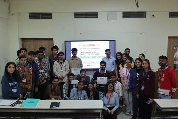 The School of Basic and Applied Sciences organised the Inter-University event “Innovate & Integrate: Interdisciplinary Science Challenge”. The event saw 30 participants from institutions including KRMU, GD Goenka University, Shri Vishwakarma Skill University, PIET, and Uttaranchal Ayurvedic College. Students presented innovative interdisciplinary ideas, showcasing strong creativity and scientific thinking. The winners were: