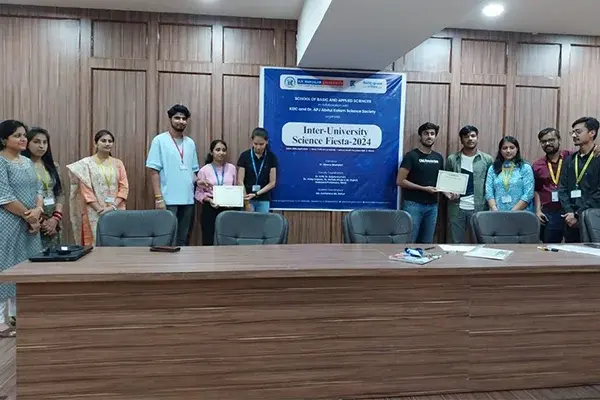 School of Basic and Applied Sciences, in collaboration with KEIC and the Dr. APJ Abdul Kalam Science Society, successfully organized an Inter-University Science Fiesta. The Fiesta featured four engaging activities such as Science Quiz, Science Themed Games and Puzzles, Science Movie and Refreshment, Science Model Exhibition. Overall, the Inter-University Science Fiesta was a resounding success, characterized by active participation, knowledge sharing, and fun-filled activities. Students thoroughly enjoyed the event, fostering a spirit of curiosity and exploration in the realm of science.