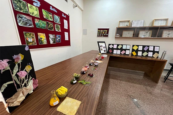 Dr. APJ Abdul Kalam Science Society organised an event titled “Hands-on Demonstration on Extraction and Application of Natural Dye,” conducted by the students of SOAS. This insightful session involved the preparation of fabric dye and food colour using natural resources, offering a practical experience in sustainable practices. The session began with an introduction to the significance of natural dyes, followed by demonstrations of how to extract different colours from various natural sources. Students discussed using hibiscus, turmeric, beetroot, purple cabbage, and spinach to produce food colours. For fabric dyeing, a broader range of materials was used, including turmeric, beetroot, purple cabbage, spinach, coffee, bougainvillea, henna, tea leaves, jaggery, red sand, and roselle flower. This hands-on approach allowed participants to explore the vibrant possibilities of natural dyes, fostering an appreciation for eco-friendly alternatives in both the food and textile industries.