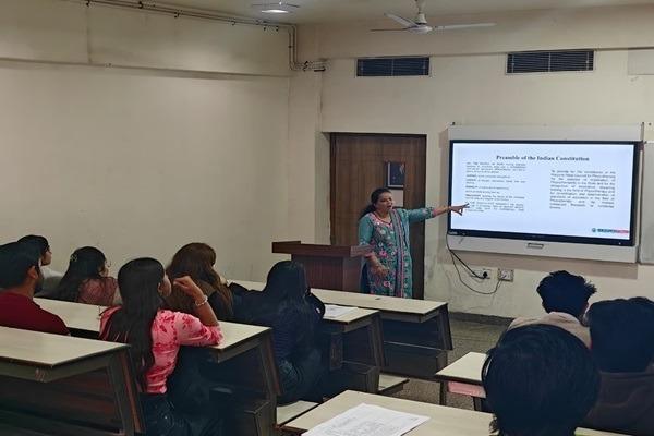 The School of Physiotherapy and Rehabilitation Sciences (SPRS) organised an invigorating session on “Samvidhan & Seva: The Constitution and the Healer’s Duty- sensitizing medical students to civic values and constitutional responsibilities” for students. The resource person Dr. Inderpreet Kaur, Professor and Associate Dean SOLS, highlighted the importance of having seva and samvidhan bhav in healthcare profession. She shared her invaluable insights on keeping empathy along with sympathy during treatment of cases through real life case studies. It was an insightful session for students.