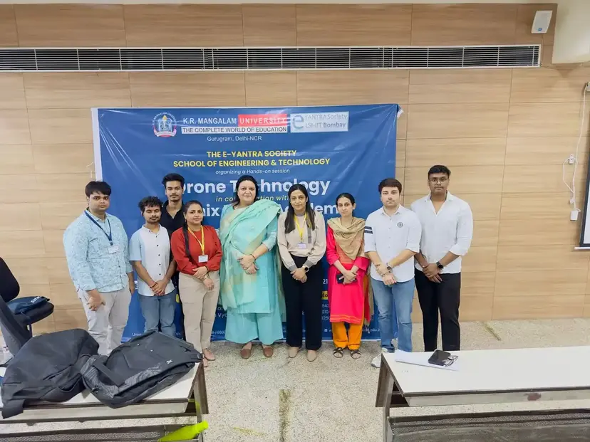 The E- yantra society, School of Engineering and Technology organised a hands on training session on Drone Technology in collaboration with Phoenix Flying Academy at KR Mangalam University. Students had an incredible learning experience wherein they were providing hands-on experience, and valuable insights. An engaging discussions on drone applications, drone tech knowledge were shared by the experts. The enthusiasm and active participation of our students made this event truly remarkable. This workshop not only broadened their horizons but also inspired them for future endeavors in drone technology.