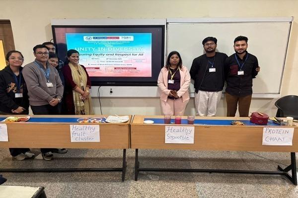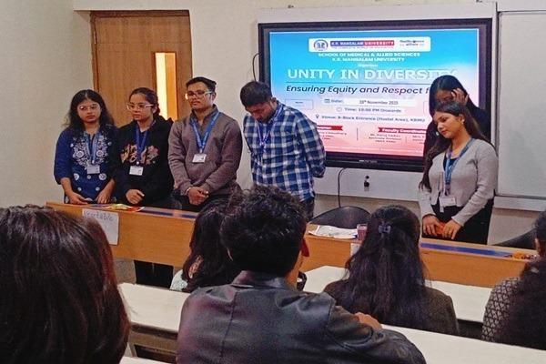 The School of Medical & Allied Sciences organised a vibrant Pan-University event titled “Unity in Diversity: Ensuring Equity and Respect for All,” celebrating cultural harmony, inclusiveness, and the rich diversity within the K.R. Mangalam University community. The programme began with a warm welcome and an inspiring inaugural address that highlighted the importance of unity, mutual respect, and cultural sensitivity in academic spaces. Students, faculty, and staff from various departments participated enthusiastically, engaging in performances, exhibits, and interactive activities that showcased regional traditions and promoted meaningful dialogue. The event also emphasised the significance of healthy eating, nutritional awareness, and the use of natural taste enhancers in maintaining overall well-being. By combining cultural celebration with wellness education, the initiative successfully reinforced the university’s commitment to fostering an inclusive, respectful, and health-conscious campus environment.