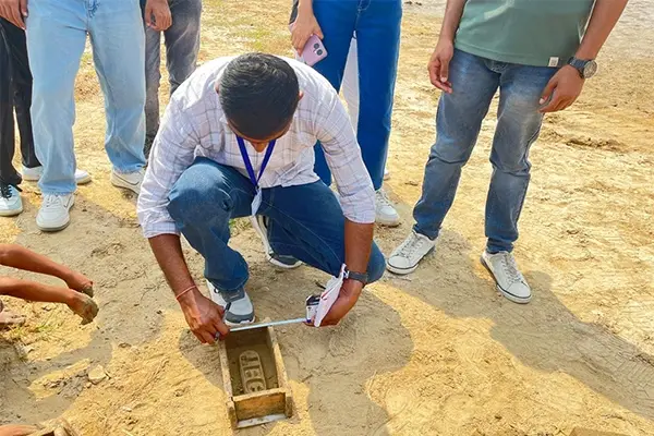 Students of B.Arch programme undertook an educational visit to the brick kiln located in Kherli Dausa, Haryana. The primary objective of this trip was to gain firsthand knowledge of the brick manufacturing process and the classification of bricks into different grades. The visit provided students with valuable insights into the practical aspects of brick production. The kiln staff demonstrated each stage of the process, from the preparation of raw materials to the final classification of bricks, enriching their understanding of the subject. The experience was highly beneficial for the students, enhancing their theoretical and practical knowledge in the field of construction materials.