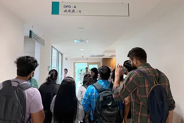 School of Architecture and Design (SOAD), students visited Max Super Speciality Hospital, Dwarka, for a case study. They explored various hospital departments, focussing on planning and the interrelation between departments. The visit highlighted service-dominant areas like waste management, housekeeping, and administration, which are essential for smooth hospital operations. Students gained insights into the detailed planning of the emergency ward, radiation department, OPD, and IPD. It was a valuable learning experience for students.