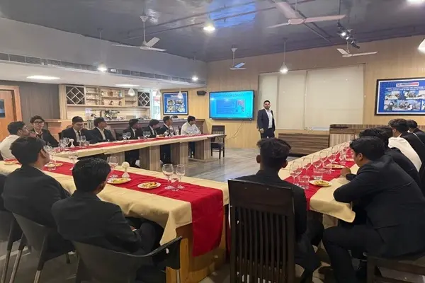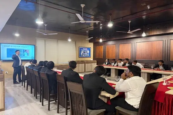 The School of Hotel Management and Catering Technology signed an MoU with Saraswati Foundation, initiating a valuable collaboration aimed at enhancing academic and practical learning for students—especially in food and beverage management, with a focus on whiskey tasting and hospitality skills. To celebrate this partnership, SOHMCT hosted a successful whiskey tasting workshop at the F&B Service Lab. The session began with an engaging presentation on the factors influencing whiskey’s taste and characteristics. Mr. Mukesh led the interactive tasting session, emphasising the use of all five senses—sight, smell, taste, feel, and sound—to fully appreciate whiskey. Students learned to analyze aspects like color, aroma, texture, and flavor, developing the ability to distinguish between different whiskey profiles. The workshop also covered food and drink pairing, an essential skill in the hospitality sector. Mr. Mukesh shared insights on matching whiskey with various dishes—from cheese and charcuterie to grilled meats and desserts—demonstrating how thoughtful pairings enhance the overall dining experience. The workshop provided students with deeper knowledge of whiskey tasting, pairing, and the expertise needed to excel in the dynamic food and beverage industry.