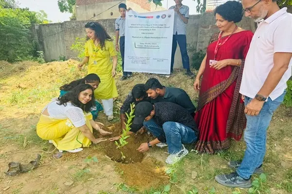 To commemorate World Environment Day the School of Engineering & Technology in collaboration with the Centre of Excellence – Cloud Computing , Akhil Bharatiya Vidyarthi Parishad (ABVP), Gurugram Mahanagar and NSS, organised a large-scale Plantation and Plant Distribution Drive at Government Senior Secondary School, Teekli, Gurugram and Mahendrawara. The initiative was aimed at spreading awareness about environmental conservation, promoting green practices, and encouraging active participation from school children and the local rural community.