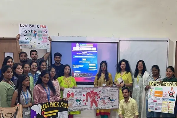 On Day 3 of World Physiotherapy Week, organised by the School of Physiotherapy and Rehabilitation Sciences, students pursuing their Bachelor’s in Physiotherapy showcased their creative sides by preparing posters and reels focused on lower back pain. They selected various locations across the campus to create reels highlighting the vital role of physiotherapists in managing lower back pain. The students also designed colorful posters illustrating the causes, types, and physiotherapy treatments for lower back pain.